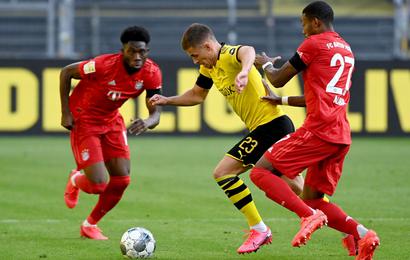 Comenzó dominando el Dortmund, los primeros 10 minutos se jugaron el el arco del Bayern, 3 jugadas de peligro para los locales, la primera fue salvada por David Alaba en la linea de gol, en la segunda, Manuel Neuer detuvo un tiro potente por parte de Julian Brandt, y al minuto 9, los locales anotaron, pero el gol fue anulado por fuera de lugar.