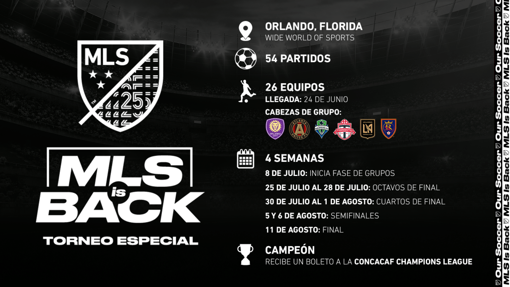 Los partidos se disputarán a lo largo de 16 días en el ESPN Wide World of Sports Complex. Los mismos contarán para la clasificación de la Temporada 25 e la MLS 2020. Los equipos comenzarán a llegar a Orlando a partir del 24 de junio para la pretemporada.