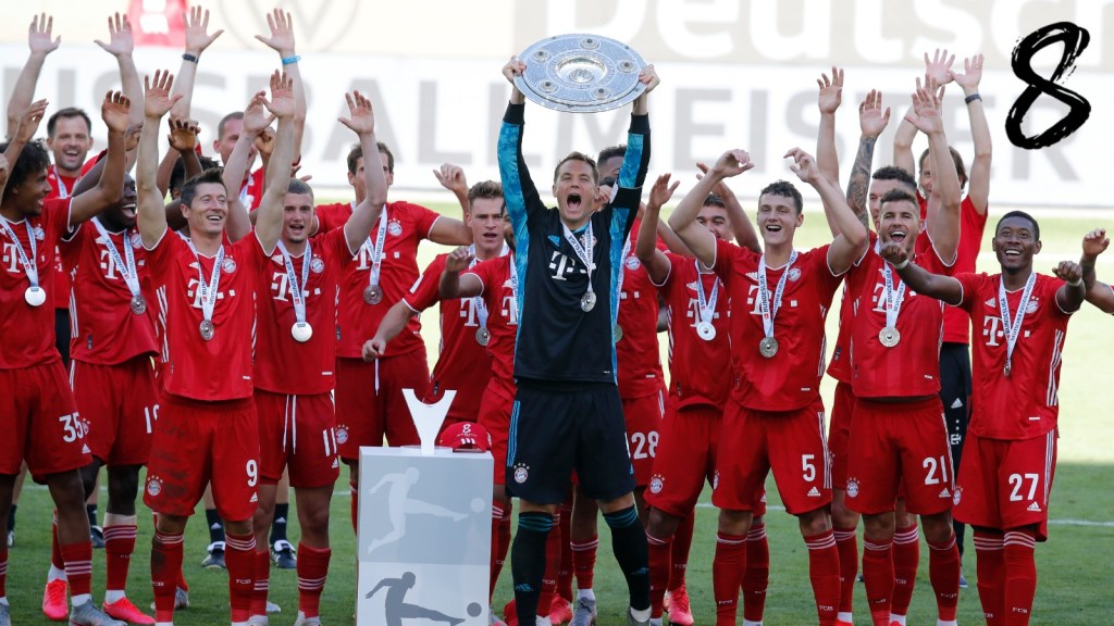 Era cuestión de tiempo para que el título se lograra, y luego de despacharse al Fortuna Düsseldorf, Bayer Leverkusen y Borussia Mönchengladbach, la oportunidad de dar la estocada final por el título llegó en la jornada 32 en la visita al Weserstadion. Una victoria ante el Werder Bremen le daría al gigante bávaro la ventaja definitiva en la tabla sobre el Dortmund, y del botín de Robert Lewandowski, consiguieron el triunfo 0-1 y con ello, consagrarse campeones y hacerse con su octava ensaladera en fila, siendo el primer equipo que se coronó en las llamadas ligas top de Europa, después del parón por el COVID-19 (sin contar al PSG, ya que la Ligue 1 fue declarada como terminada sin disputarse más partidos). Dos jornadas y dos victorias más tarde, el equipo pudo alzar la meisterschale en campo del Wolfsburg, equipo al que derrotaron 0-4, y con ello, finalizó la temporada de fútbol alemán.