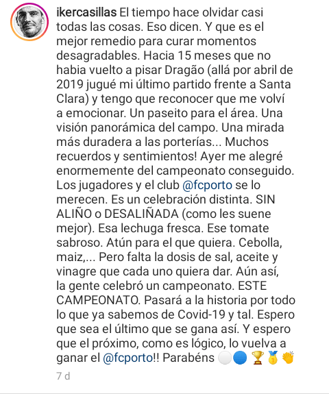 Sin embargo, a pesar de no haber jugado ningún minuto de la actual temporada, el FC Porto decidió darle su medalla de campeón de la Liga NOS como gesto por las diferencias controversias que ha vivido luchando por salud. Un acto de deportividad y nobleza hacia uno de los más mejores arqueros de la historia.