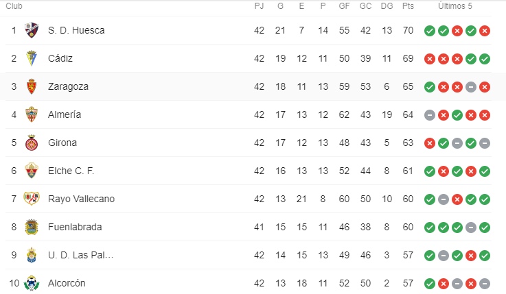 Así la tabla de posiciones de La Liga Smartbank: