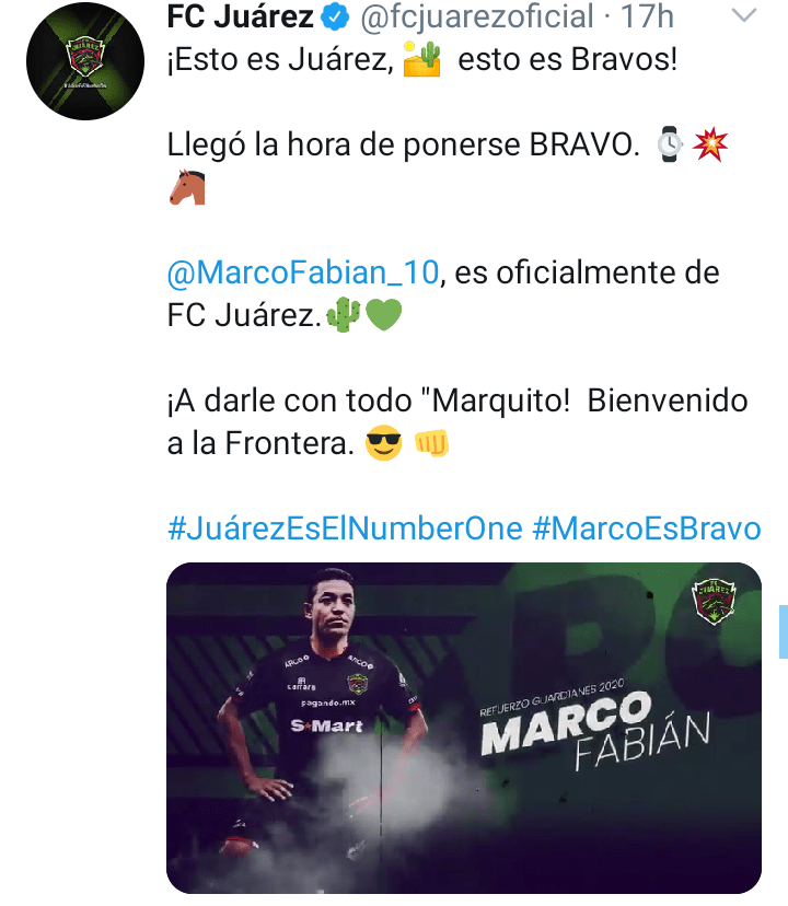 El día de ayer fue presentado Marco Fabián de la Mora como nuevo refuerzo del conjunto FC Juárez, considerado como el gran fichaje del torneo GUARD1ANES 2020.