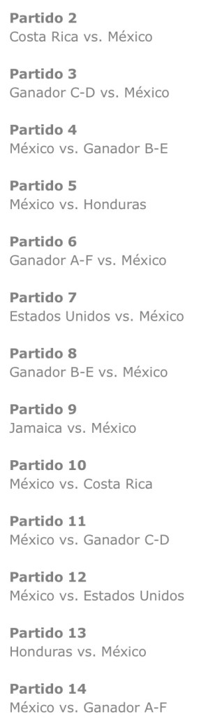 Los demás partidos a disputar del “Tri” serán los siguientes: