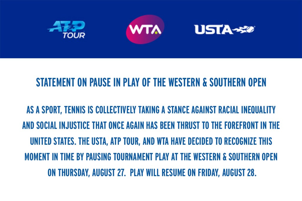 Por último, desde Cincinnati, la ATP y la WTA expresaron su postura rumbo a las semifinales del Master 1000: “En acción conjunta hemos decidido reconocer este momento con el aplazamiento de la programación prevista para el jueves 27 de agosto. La competición del torneo se reanudará el viernes”.