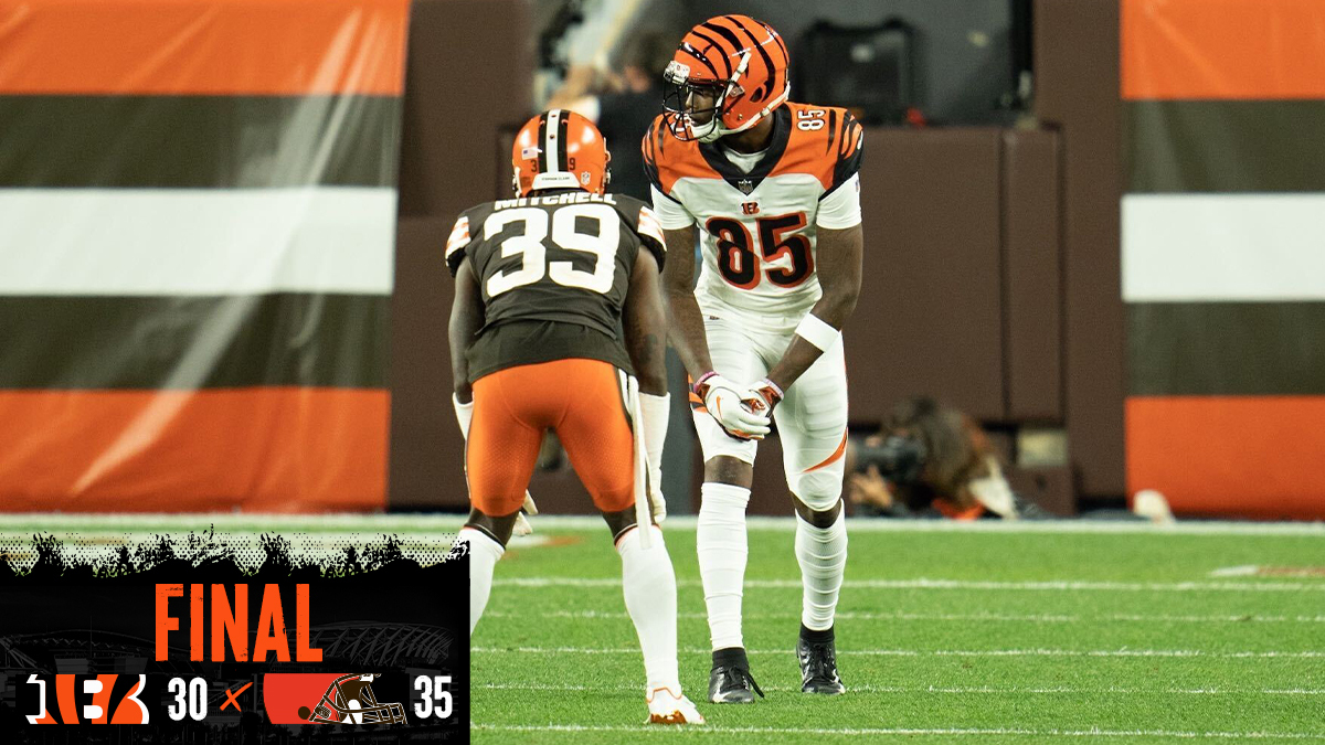 Con tres minutos restantes y una desventaja de 12 puntos, los Bengals siguieron adelante y no se detuvieron para tratar de acortar la ventaja, apostando incluso en cuarta oportunidad y logrando el touchdown que los ponía a 5 puntos de los locales en una recepción de Tyler Boyd, desafortunadamente el tiempo no estaba a su favor, pues sólo quedaba un minuto de juego y no contaban con ningún tiempo fuera, por lo que en la siguiente recepción de los Browns, Baker Mayfield simplemente puso la rodilla al suelo y terminó el encuentro.