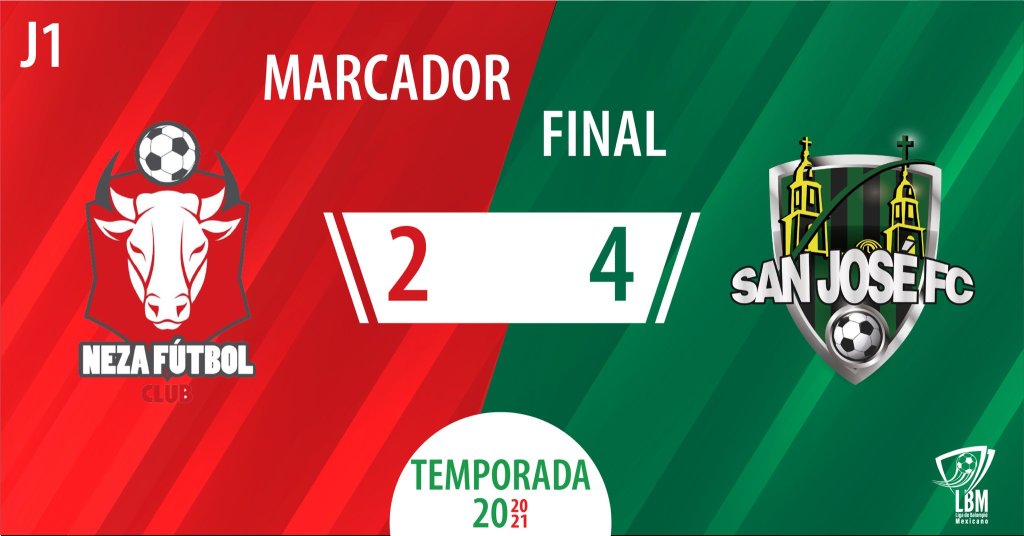 Este domingo 18 de Octubre del 2020; con motivo de la jornada 1 de la Liga de Balompié Mexicano, el Club Real San José derrotó 4-2 a Neza FC en calidad de visitante.