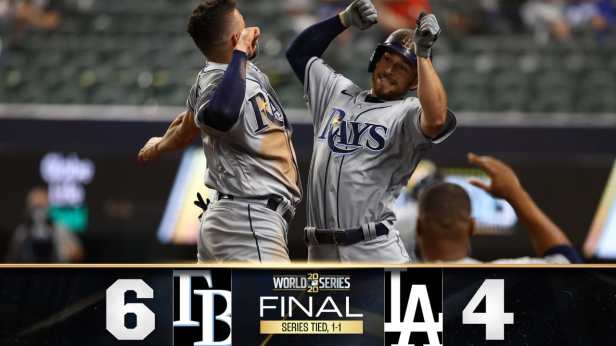 En un juego lleno de adrenalina en el Globe Life Field las figuras de Brandon Lowe y Joey Wendle encaminaron a los Rays de Tampa Bay a vencer 6-4 a los Dodgers de los Ángeles para igualar la serie mundial 1-1.