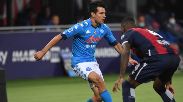 A los 23 minutos Lozano desbordaba por la derecha superando a Denswil, quien sufrió en el primer tiempo ante el mexicano, para centrar de manera exacta a Osimhen que empujaba el balón con la cabeza y marcaba el primero. A partir del gol el dominio de los visitantes se hizo cada vez más notable, Bolognia intentó frenarlos con faltas que se convirtieron en tarjetas amarillas.