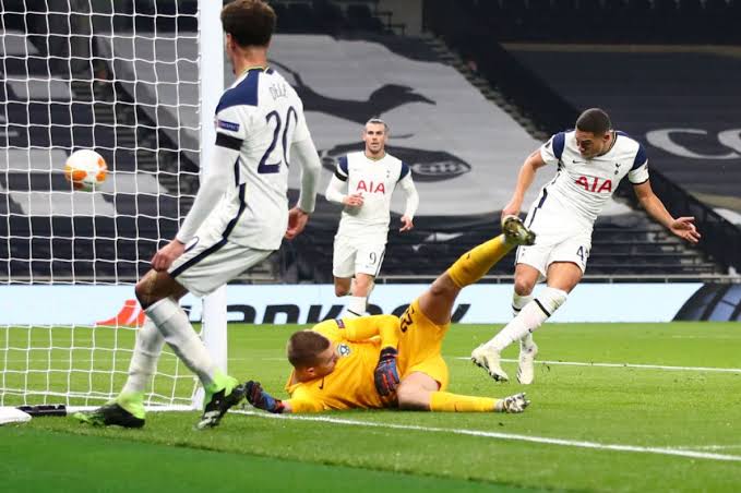 En una jugada intrascendente por el medio campo Ndombele, con una gran técnica, conduce el balón hasta los límites del área y realiza un disparo cruzado que rechaza Iliev a los pies de Alli, este último, con la cabeza fría, asiste a Vinicius dejándolo solo frente a la portería para marcar el segundo del partido. Doblete de goles y asistencias para el brasileño e inglés respectivamente.