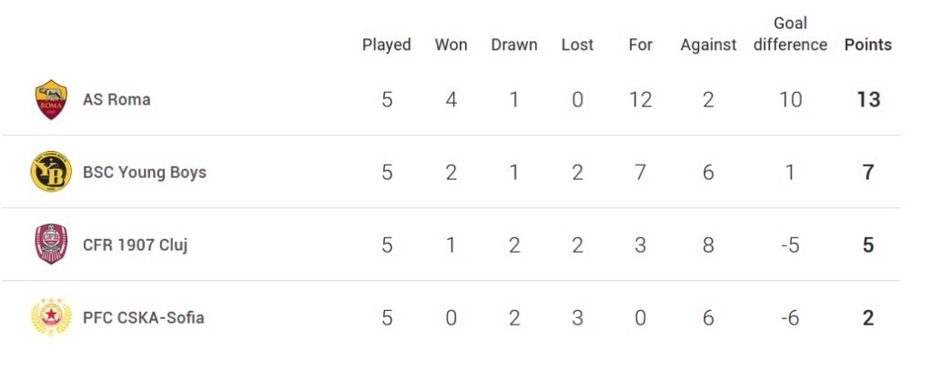 La Roma asegura el pase a dieciseisavos de final con esta victoria, además de amarrar el primer lugar del Grupo A. Young Boys deberá de jugarse aún el mismo pase contra el F.C. CFR 1907 CLUJ. Los “YB” lograrán el pase a la eliminatoria con un empate o una victoria.