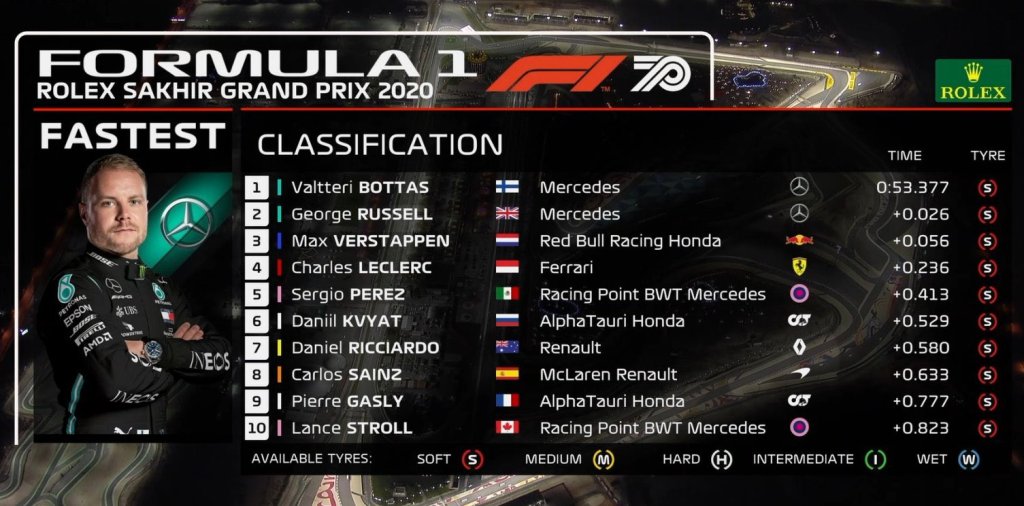 El Gran Premio de Sakhir será la penúltima carrera del año en la Formula 1 y aunque los campeonatos ya están decididos, el segundo evento en Bahréin trajo consigo varios ingredientes que lo pueden convertir en uno de los más interesantes para ver. Por lo pronto, fue Valtteri Bottas quien se hizo de la pole, batiendo por menos de tres centésimas de segundo a George Russell, su compañero emergente por el positivo a COVID de Lewis Hamilton.