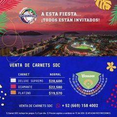 los boletos ya se encuentran a la venta en línea, los precios de los carnets para esta Serie de Caribe 2021 donde los precios rondan entre: