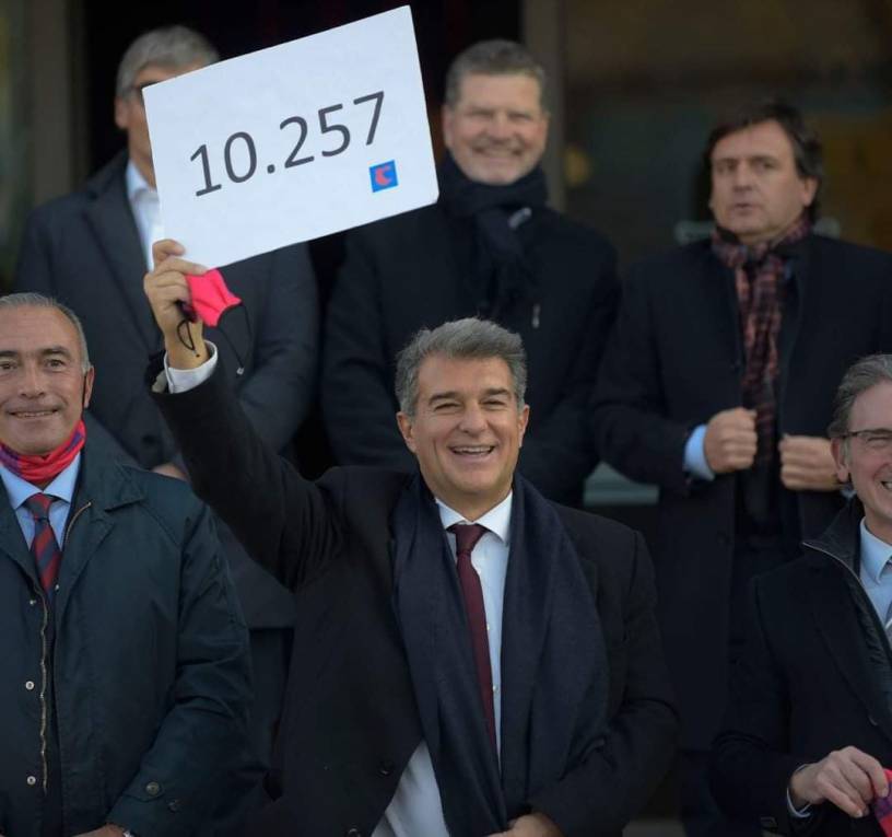 Con la hora cumplida, Joan Laporta fue el primer precandidato en haber entregado las firmas hoy día lunes, en donde se destaca la exorbitante cantidad de firmas que el abogado logró, pues juntó un total de 10.257, un número bastante considerable, pero tras conocer su pasado, es algo que a muchos no sorprende. Aún con ese número, no ha sido el precandidato que más firmas ha entregado en la historia del club, pues Sandro Rosell, logró la cantidad de 12.635 en el 2010.
