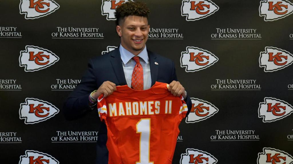 Pat se declaró elegible para el draft de 2017, en la cual había no muchos prospectos en la posición, donde él, junto con Mitchell Trubisky y Deshaun Watson, eran los perfilados para ser tomados en la primera ronda. Trubisky fue elegido en la segunda posición global (y a día de hoy los Bears probablemente se sigan arrepintiendo) y los Kansas City Chiefs hicieron un canje con los Buffalo Bills para tomar a Mahomes con la décima selección global, cediendo su pick 27 de primera ronda, uno de tercera ronda y su pick de primera ronda del siguiente año. Mucho se habló de la poca relevancia que tuvo a nivel colegial, pero de igual manera, lo que demostraba en las visitas a los campamentos de los equipos previos al draft, dejó sorprendido a más de uno. Finalmente, fueron los Chiefs los que tomaron el riesgo con Mahomes.