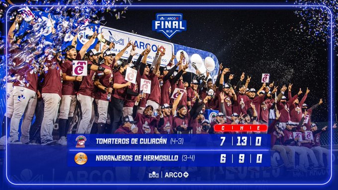 Con cuadrangular en solitario de Jesse Castillo en la décima entrada los guindas dejaron tendidos a los Naranjeros de Sonora 7-6 para ser los campeones de la Temporada 2021.