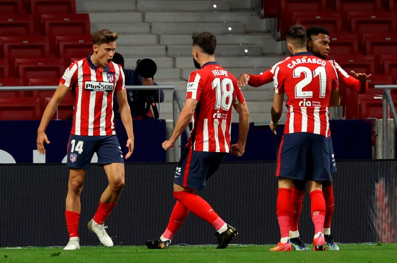 Los de Simeone contestaron inmediatamente y Yannick Carrasco enganchó y sacó un remate al borde del área que fue detenido sin problema por Unai Simón. El bloque defensivo de lo Vascos opuso resistencia al ataque del Atleti pero al cierre del primer tiempo una escapa de Lemar por la banda terminó en un remate de cabeza de Llorente que logró vencer a Unai Simon para poner el uno a uno antes del descanso.