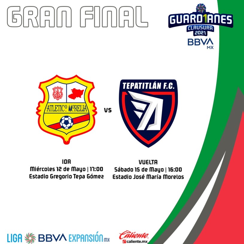 Atlético Morelia y Tepatitlán están listos para enfrentarse en la gran final del Torneo Clausura Guard1anes 2021, de la Liga de Expansión. Disputarán la ida el día miércoles, 12 de mayo y la vuelta el sábado, 15 de mayo.