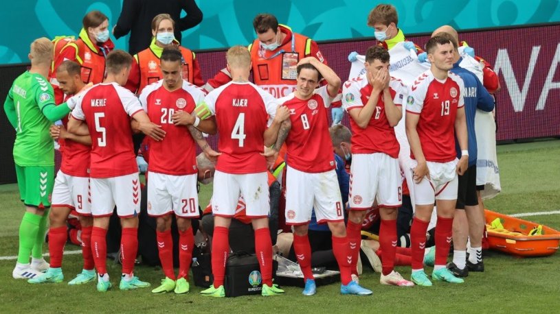 Cerca del minuto 42 con el marcador igualado a 0, Eriksen cayó sobre el terreno de juego, sin razón aparente.