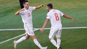 En el suspiro del primer tiempo al 45+2 un balón área hizo que el arquero saliera mal y no pudiera controlar el esférico, la posesión quedaría en pies de Moreno que era perseguido por Dubravka y los defensas de Eslovaquia, Gerad conduciría un poco al filo del área para después poner una pelota bombeada que encontraría a medio vuelo a Laporte, el central remataría y con el portero volviendo no podría detener el balón que fue a contra pie y de esta manera España conseguía ponerse 0-2, asegurando su clasificación.