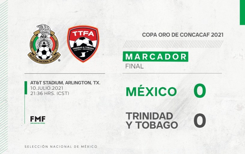 Tras la disputa de los últimos 45 minutos, el marcador no se movería. A pesar de las muchas oportunidades que tuvo México de abrir el marcador, se toparon con Marvin Phillips que les atajó todo, hasta lo imparable.