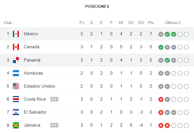 Con este resultado, momentáneamente mexicanos y panameños se colocaron como primer y tercer lugar del Octagonal Final con 7 y 5 puntos respectivamente, a la espera de lo que suceda en el Honduras vs Estados Unidos. En cuanto a las siguientes fechas de la eliminatoria se estarán jugando los días 7, 10 y 13 de octubre; en el caso de México estaría recibiendo a Canadá, Honduras y visitando el Salvador, mientras que Panamá saldrá rumbo a El Salvador, recibirá a Estados Unidos y visitará a Canadá.