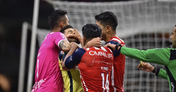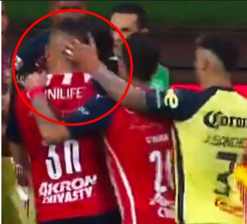 Primero, Jorge Sánchez llegó a darle un «zape» al Chicote, aprovechando el cruce de palabras entre Miguel Ponce y Pedro Aquino. Esta es una agresión y provocación del defensor americanista, pero Ramos Palazuelos no mostró tarjeta alguna.
