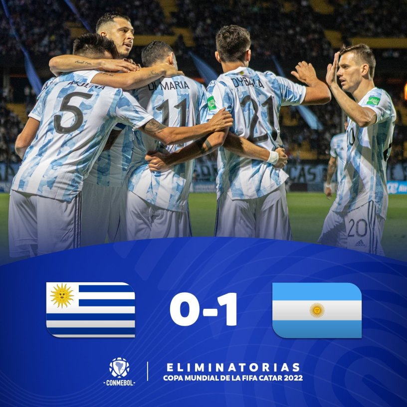La Selección Argentina dio un paso más a Catar 2022 al vencer por la mínima a su similar de Uruguay en el estadio Campeón del Siglo en Montevideo. El Campeón de América se coloca como segundo lugar de las Eliminatorias con 28 unidades, mientras que los Charrúas se ubican en la 6ta posición con 16 puntos.